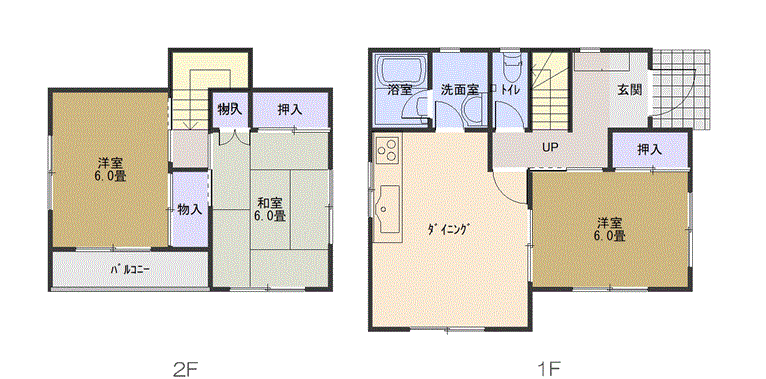 1F 9.5帖LDK,6帖洋,浴室,水洗トイレ,洗面所2F 6帖和,6帖洋